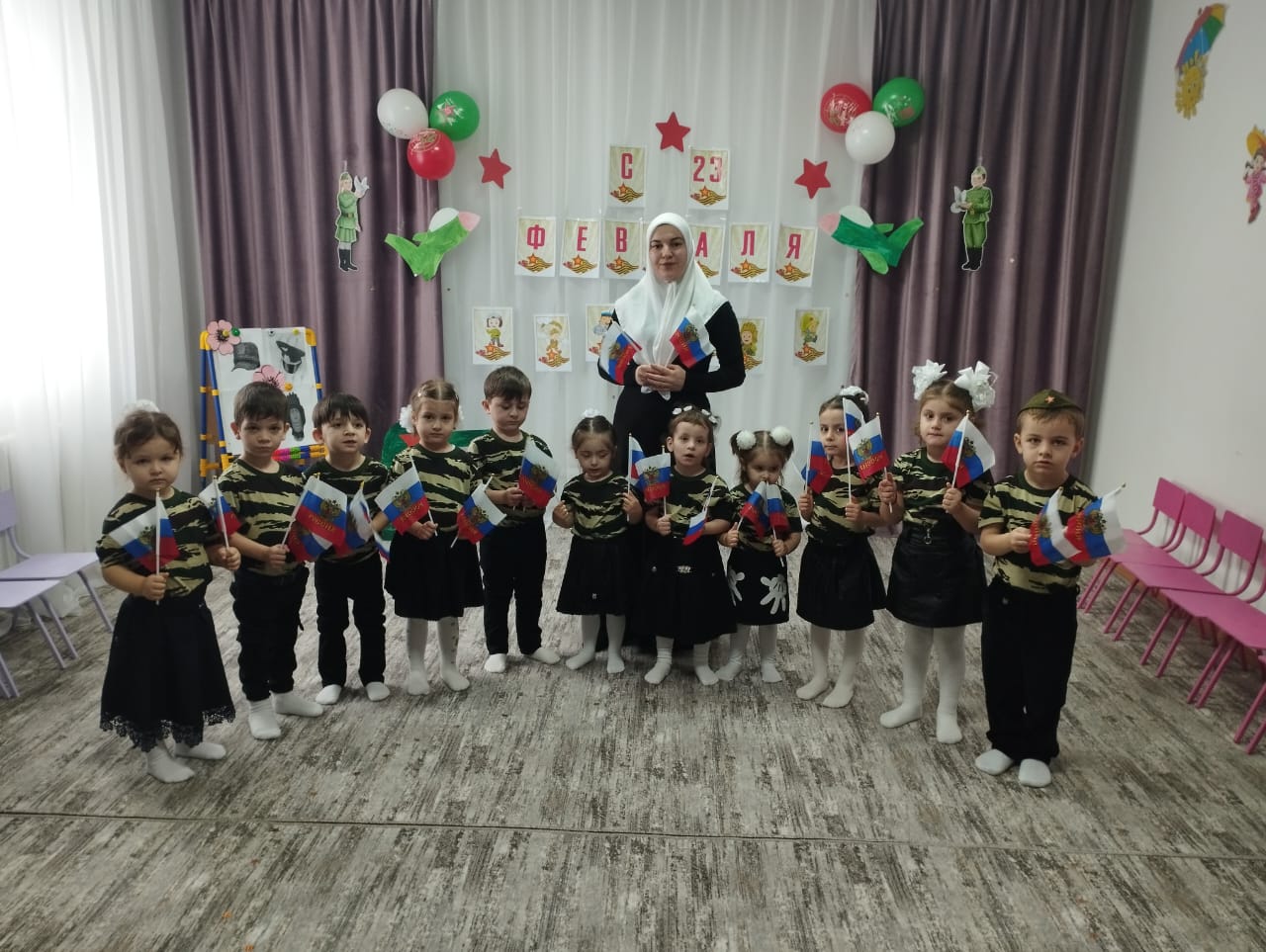 Согласно годовому плану работы 20 февраля 2024 года в ДОУ состоялось мероприятие посвященное "Дню защитника Отечества" в старшей группе.